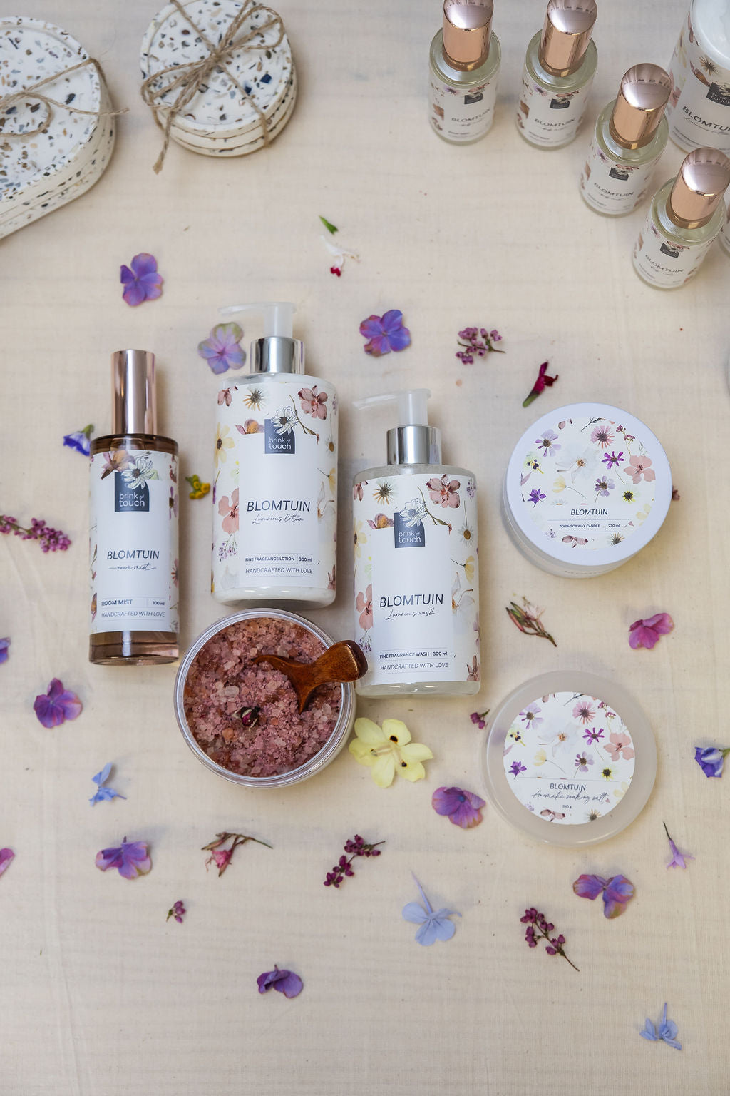 Our signature Blomtuin fragrance celebrates femininity, embodying a sense of joy and the gentle pursuit of happiness. Inspired by the beauty of life’s simplest moments, it offers a radiant, uplifting scent that feels both timeless and graceful.  Blomtuin is a truly feminine fragrance with notes of Iris, Patchouli, Arabian Jasmine, Orange Blossom, Warm Vanilla and Spun Sugar.
